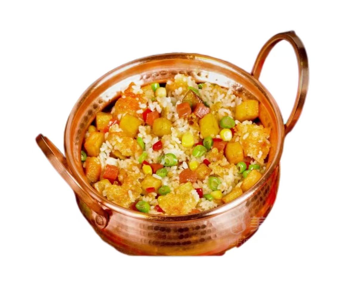 + Free ShippingCopper Pot Rice isn’t just a meal—it’s crispy, fragrant love in a pot. Fluffy rice simmered in a copper pot to form a golden crispy crust, layered with tender meat (pork, chicken, or seafood), fresh veggies, and savory soy-based broth. “Baby, let’s dig in together—taste the fluffy rice, crunchy potstickers, and juicy toppings soaked in aroma. Feed each other a spoonful, let this homey pot wrap us in warmth—every mouthful feels like a cozy, nostalgic hug!”